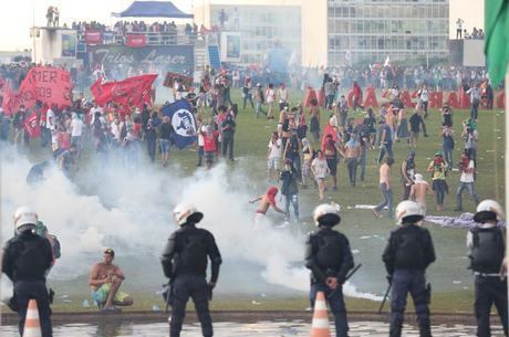 - Protesto em frente ao Congresso tem bombas, correria e carros virados