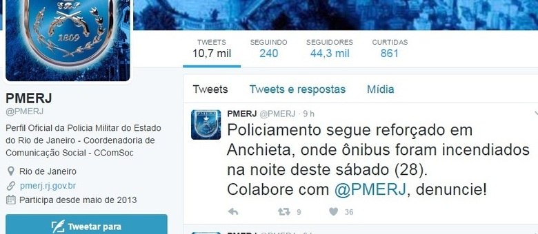 | Ônibus são incendiados na zona Norte do Rio após ação da PM no complexo do Chapadão Posted: 29 Jan 2017 03:10 AM PST Os ônibus foram incendiados nas principais vias do bairro Reprodução/Twitter Ao menos seis ônibus foram incendiados na noite desta sábado (28) no bairro de Anchieta, na zona Norte do Rio de Janeiro. Os ataques foram uma retaliação à operação da Polícia Militar nas favelas do complexo do Chapadão, em Costa Barros. Após os atentados, a PM reforçou o policiamento na região e pediu, pelo Twitter, que a população colabore denunciando os autores dos ataques. Leia mais informação do Rio de Janeiro Os moradores do bairro de Anchieta ficaram assustados com a retaliação dos criminosos. Um internauta publicou a seguinte mensagem numa rede social, às 23h20 do sábado. "Alcobaça está parecendo a Faixa de Gaza, só tem ônibus pegando fogo", referindo-se à rua Alcobaça, uma das principais vias do bairro. O complexo do Chapadão é composto por cerca de 20 favelas dominadas pela facção criminosa Comando Vermelho. A ação dos criminosos na região também se estende aos bairros vizinhos de Guadalupe e Pavuna. De acordo com a PM, na operação de ontem, foram apreendidas uma granada, diversas drogas e uma pistola. Dois homens morreram durante a operação. Pelo Twitter, a PM informou que o policiamento foi reforçado e pediu ajuda para que a população denuncie Reprodução |